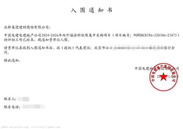 ,龙牌漆是北新建材“一体两翼”战略中建筑涂料主要产品。北新涂料成立以来,通过扩大规模提升产能、优化产品结构、强化产品创新及客户服务满足客户高标准需求、加强区域建设保障工程交付能力、推进绿色建材下乡等举措,不断提升企业综合实力。龙牌漆在产品品质、技术创新、品牌影响力等方面实现不断突破、持续提升,以强劲实力和优异表现赢得了合作伙伴的广泛认可与信任。此次中标,也是北新建材深耕涂料市场,强化战略级业务取得的成果。,中国电建地产重组成立于2005年11月,是国务院国资委核定的首批16家主营房地产开发与经营业务的中央企业之一。作为《财富》世界500强中国电建旗下房地产开发及城市综合运营业务的唯一平台,致力于成为国内一流的城市发展运营商。截至2023年10月,已在北京、上海、广州、深圳、郑州、南京、长沙、武汉、重庆、成都、西安、雄安等32个城市(新区)开发运营了150余个项目。2022年度位列全国品牌房企第25位。,